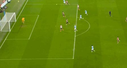 第52分钟,多库左路突破,禁区内起脚兜射,皮球击中立柱弹出,福登补射被巴拉迪封堵。